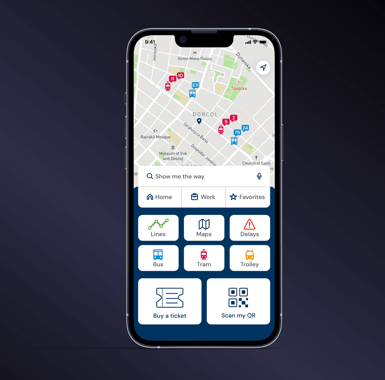 Public transit apps often overload users with information, unclear navigation, and fragmented ticket flows. The goal was to redesign the experience around real commuter behavior - making route planning and ticket access faster and more intuitive in time-sensitive situations.
