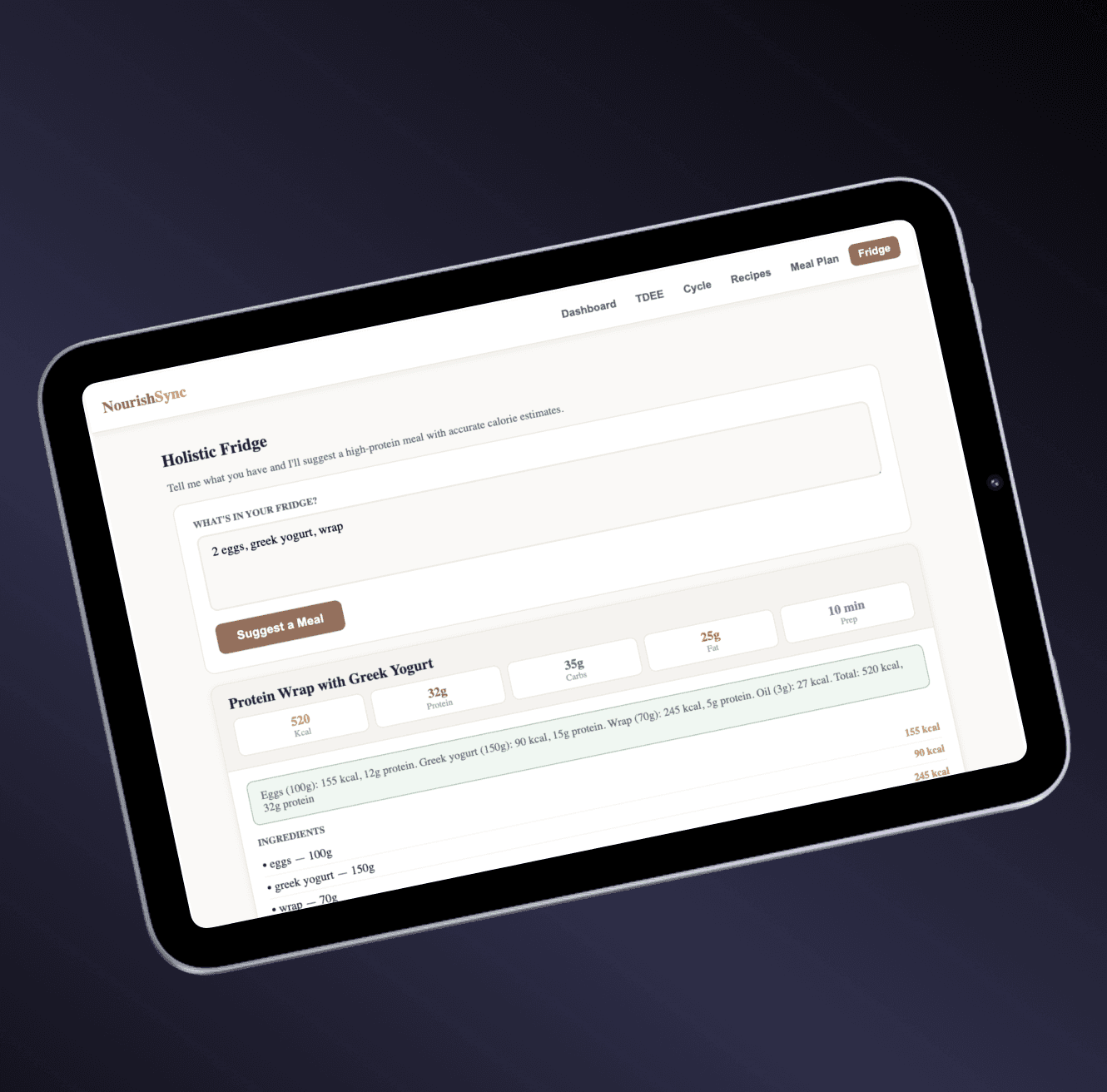 Designed 'Fridge' feature for ingredient-based meals