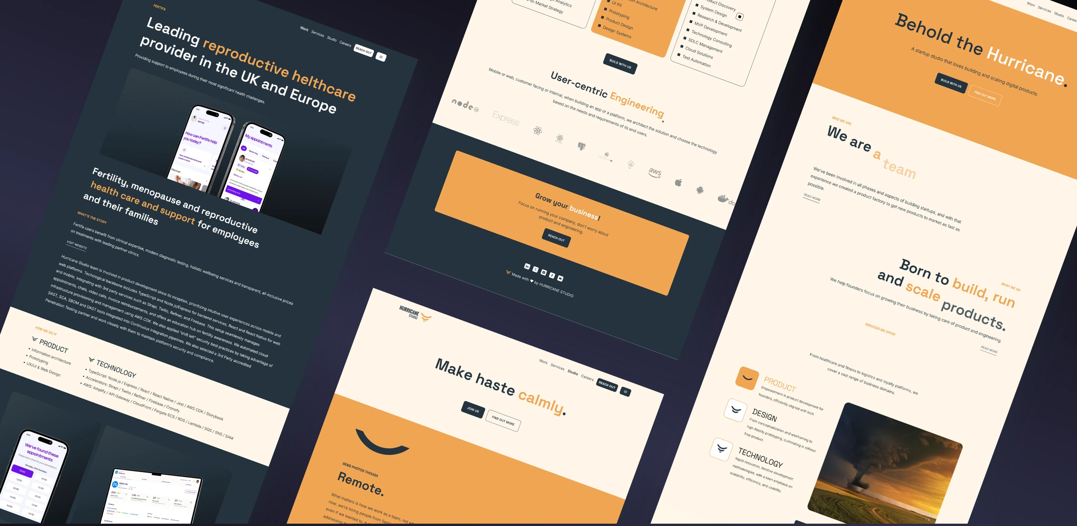 Create a structured and modern website experience that presents Hurricane Studio as a credible startup partner, not just a basic service provider. The challenge was to improve how their work, capabilities, and approach are communicated — shaping a clear, consistent, and responsive digital presence that reflects the studio’s strategic depth and technical quality.